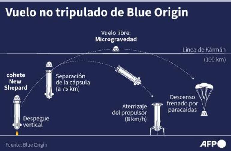 En total, Blue Origin ha hecho seis vuelos con tripulantes -algunos pagos y otros invitados- desde julio de 2021, con el propio Bezos en el primer grupo.