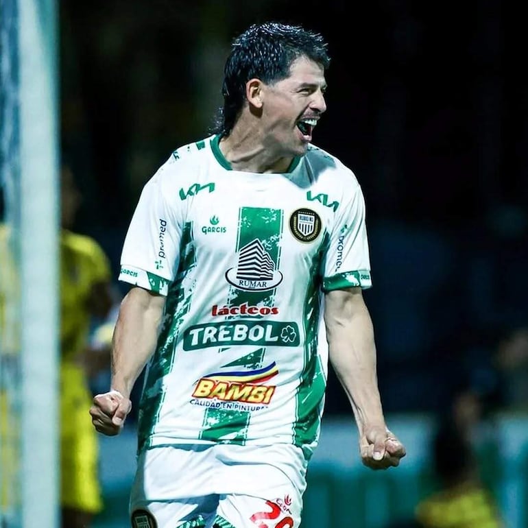 Fernando "Chapa" Martínez (31 años), festejando su primer gol con Rubio Ñu, marcado contra Recoleta FC.