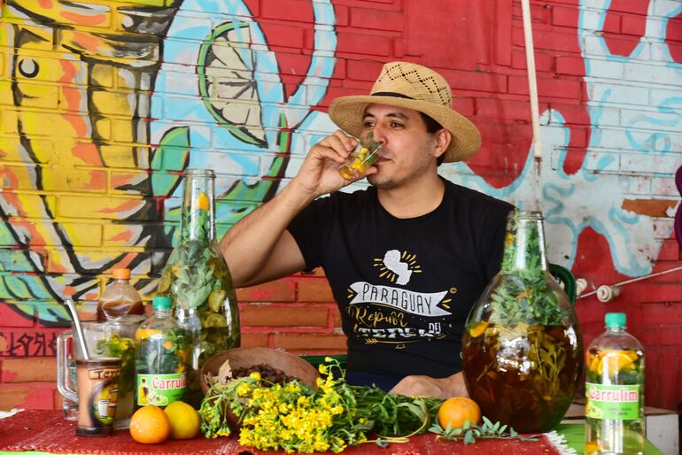 En el Mercado 4, específicamente en el Paseo de los Yuyos y el Tereré Literario –explica Javier Torres– promueven tres tipos de carrulim. El tradicional, que lleva solamente caña blanca, ruda macho y limón; el levantol con caña, ruda, limón, hojas de catuaba y miel de abeja, y el carrulim anti pire vai, dulce y aromático con caña blanca, ruda, limón, con agregado de cáscara de naranja y guaviramí. Esta última variedad ya han comprado varias empresas para repartir a sus empleados, comenta Javier Torres.