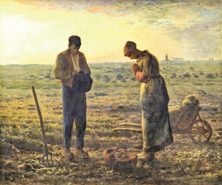 La tierra daba al campesino posibilidades de supervivencia que ya no tiene. Su éxodo, el desdén por su tradición, rompen sus lazos con la comunidad, muchos de cuyos miembros se complacen en apoyar a los poderosos para sentir cierto poder vicario sobre los débiles. Millet, dice Berger en un artículo de 1976, pintó la poda, la siega, la siembra, la tala, la dura vida del campo, una vida cruel pero que supo ver que sería sacrificada a la miseria de los suburbios y al mercado producto de la industrialización. Y de los campesinos que pintó, al fin osaron decir los peores cuanto ni siquiera ellos habían dicho de los campesinos reales que aún trabajaban la tierra o que, ya desarraigados, llegaban a las ciudades: «son cretinos», «son animales», «están degenerados». Millet dedicó su vida a hacer justicia a este tema central de su obra y darle dignidad y permanencia.