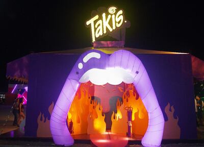 En el predio del festival se montó un stand con los colores característicos de Takis.