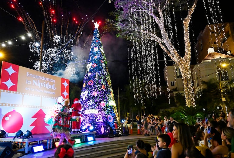 Familias disfrutaron el encendido del árbol del Mariscal.Heber Carballo