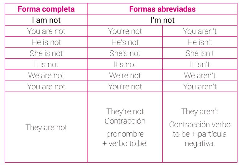 Puedes hacer la contracción de los pronombres personales I, you, he, she, it, we, you y they con el verbo to be, o bien hacer la contracción del verbo to be con la negación not.