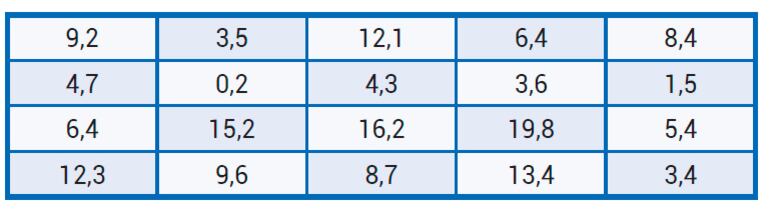 Supongamos que los valores que se quieren distribuir en una tabla de datos agrupados son los que aparecen a continuación.