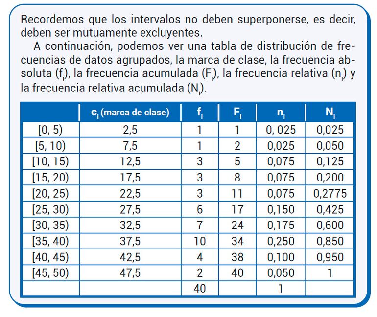 Es conveniente que el número de intervalos oscile entre 6 y 15.