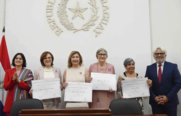 El Centro Cultural de la República El Cabildo entregó hoy el reconocimiento Maestros del Arte a cuatro destacadas exponentes de la cultura nacional: Luz María Bobadilla, Margarita Miró, Erenia López y Maribeth Brizuela. También fue reconocido el artista nivaclé Osvaldo Pitoé, quien no pudo estar presente en la ceremonia.