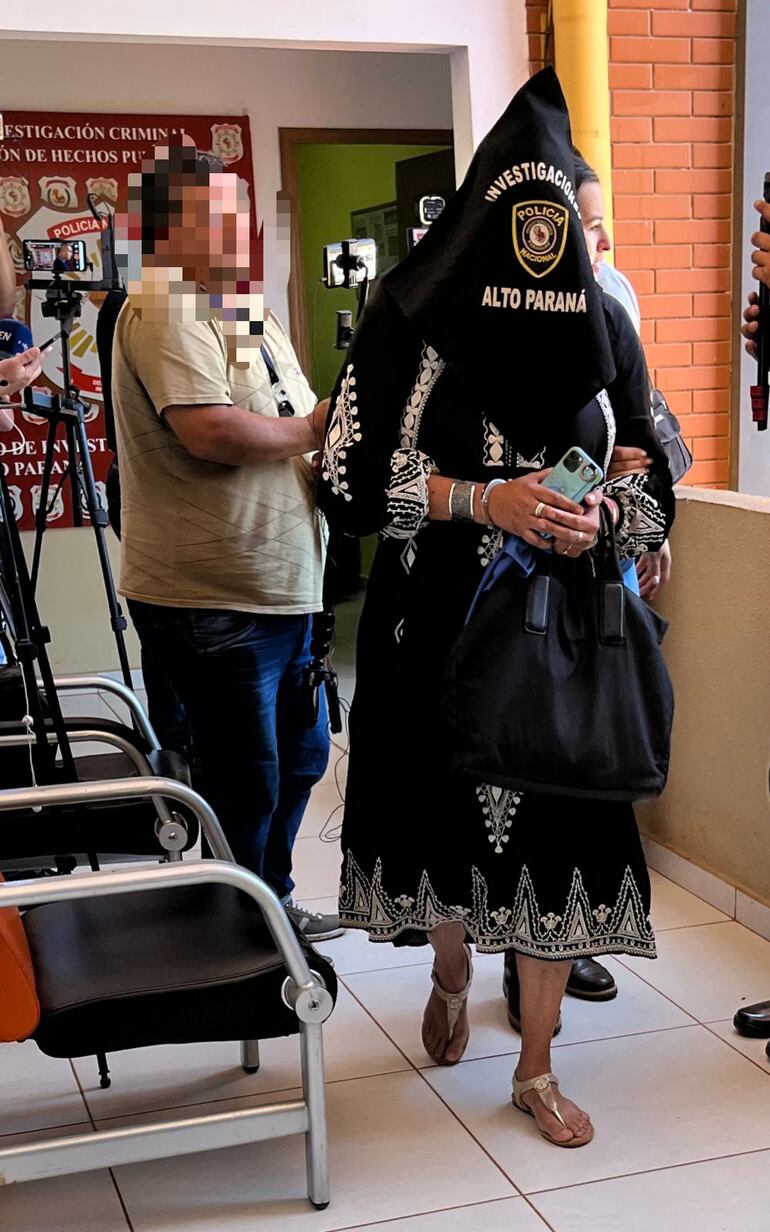 La mujer fue trasladada en una patrullera hasta la base del Departamento de Investigaciones, ubicada sobre la Ruta PY07 (ex supercarretera Itaipú), en el barrio San José de esta capital departamental.