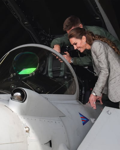 Kate Middleton se reunió con los militares y tuvo la oportunidad de conocer el avión de combate de última generación llamado Typhoon, y hasta probó el simulador de vuelo.