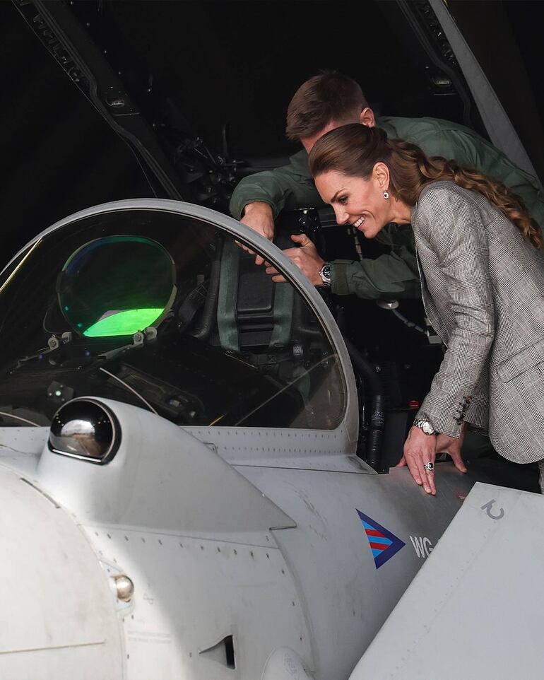 “Una primera visita reveladora a la RAF Coningsby como Comodora Honoraria Real del Aire. Desde aprender sobre las operaciones de la estación hasta conocer al personal y sus familias”, expresó Kate Middleton en la cuenta oficial de Instagram de los príncipes de Gales.