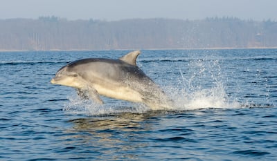 Un delfín salta fuera del agua en el fiordo de Flensburg. Los delfines son de los animales más populares del reino animal, pero también se entrenan para la guerra.Benjamin Nolte