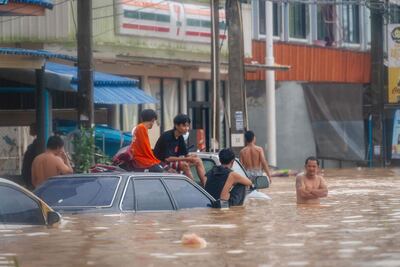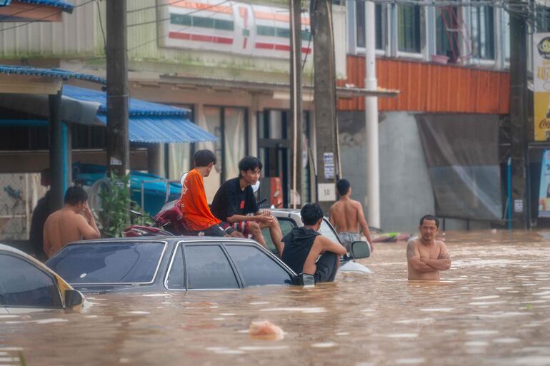 Coches apilados tras ser arrastrados por la corriente, personas esperando ayuda en los tejados o caminando con el agua hasta el cuello, escombros y un manto de lodo sobre las calles, son algunas de las imágenes que ha dejado el desastre en Hat Yai.