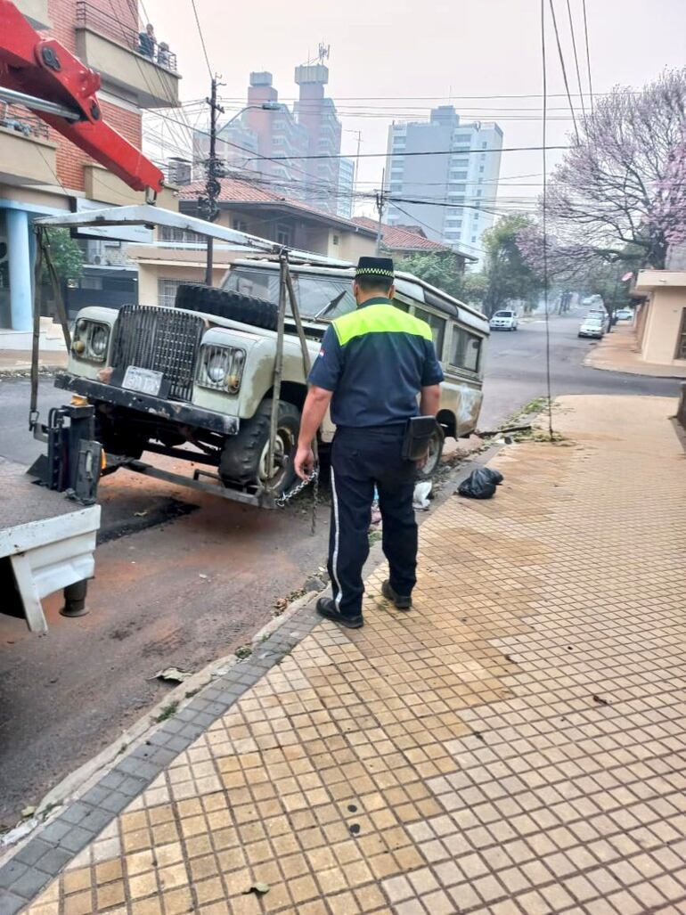 El vehículo retirado hoy de la vía pública, tras varias denuncias de los vecinos de la zona, fue depositado en la Unidad Operativa N° 1, ubicada en 14 de Mayo y Playa. Si el propietario desea recuperar su vehículo debe acercarse a dicha unidad y realizar los trámites de rigor además de pagar una multa de tres jornales, correspondientes al servicio de grúa.