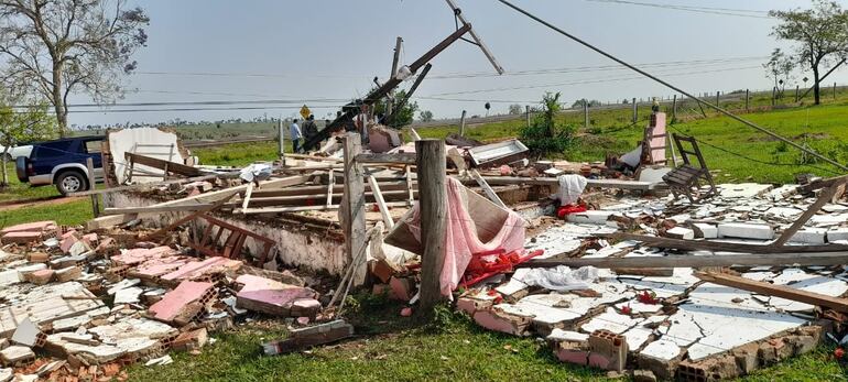Ya en la madrugada el ventarrón dejó 20 casas afectadas en el distrito de Yby Yau, específicamente en la zona de la colonia Herminio Mendoza, más conocida como Pasiño. Las chapas que servían de techo a las viviendas volaron con la fuerza del viento, que también terminó por el echar una estructura de material cocido.