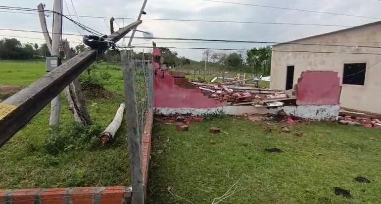 En el distrito de Arroyito, en la zona conocida como San Blas de la colonia Primavera se reportaron daños en unas cuatro casas. Allí el viento destruyó también el antiguo local de la capilla y unas 20 columnas de hormigón de la ANDE quedaron destruidas.