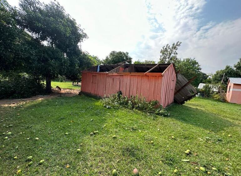 Ya en la madrugada el ventarrón dejó 20 casas afectadas en el distrito de Yby Yau, específicamente en la zona de la colonia Herminio Mendoza, más conocida como Pasiño. Las chapas que servían de techo a las viviendas volaron con la fuerza del viento, que también terminó por el echar una estructura de material cocido.