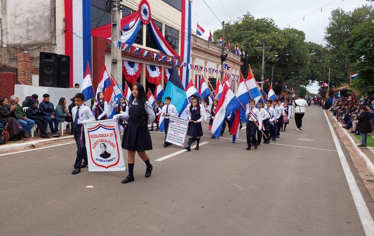 Un total de 25 instituciones educativas y organizaciones civiles de San Pedro de Ycuamandyyú participan del tradicional desfile, también este año desde el distrito de Puerto Antequera se une el Colegio General Marcial Samaniego.