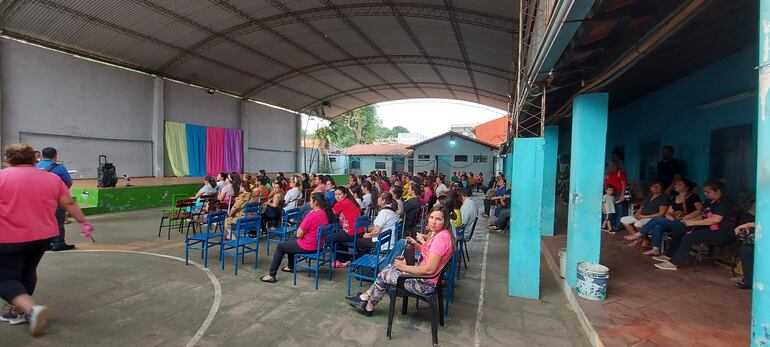 Padres y docentes en la institución educativa Adrián Jara de Luque.