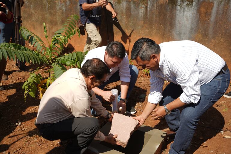 El acto de la palada inicial y la colocación de la “piedra fundamental” fueron encabezados por el gobernador de Caazapá, Cristian Acosta (ANR); el administrador diocesano de la Diócesis de Villarrica del Espíritu Santo, Blas Arévalos; el cura párroco de la iglesia de Caazapá, Darío Antonio Duarte; el intendente de Caazapá, Amado Díaz Verón (ANR), y varios intendentes del departamento de Caazapá.