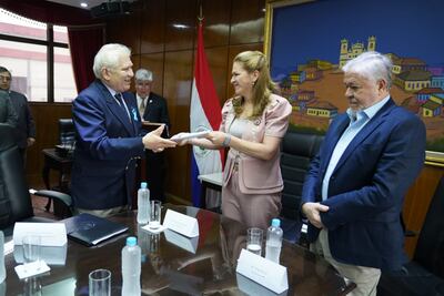 María Teresa Barán, ministra de Salud; Gustavo González, nuevo consejero del IPS y Jorge Brítez, presidente de la previsional.