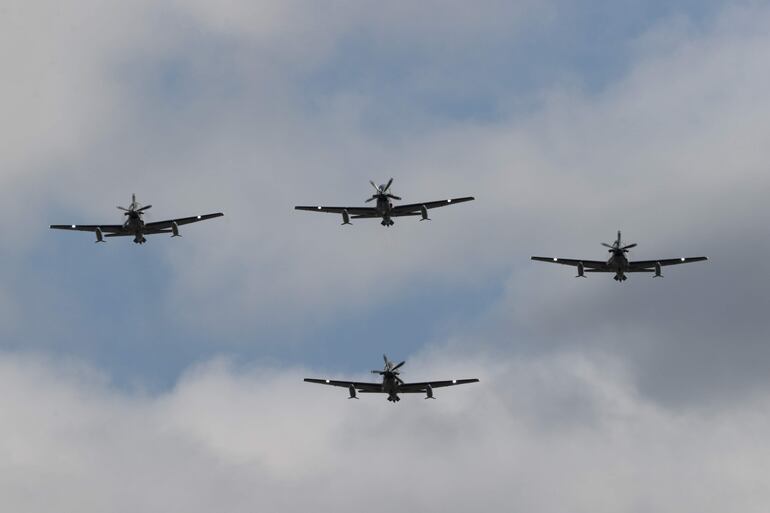 Durante la siesta de este lunes se dio el aterrizaje de cuatro Super Tucano en la Primera Brigada Aérea de la Fuerza Aérea Paraguaya (FAP), de los seis que adquirió el Gobierno para reforzar el espacio aéreo. Los aviones debían llegar el pasado viernes, pero tuvieron un retraso.