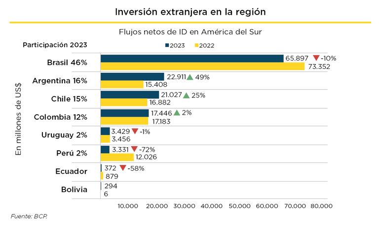 La evidencia es contundente en cuanto a los avances en la economía paraguaya a partir de la inversión extranjera. Sin embargo, al compararnos con la región, todavía estamos rezagados. Según datos del 2023, los flujos netos en Paraguay ascendieron a US$ 324 millones, muy por debajo de países como Uruguay y Perú, que se ubican por encima de los US$ 3.000 millones. Además, la inversión extranjera representó en promedio sólo 1% del PIB en los últimos tres años, por debajo de la media regional, en torno al 3%.