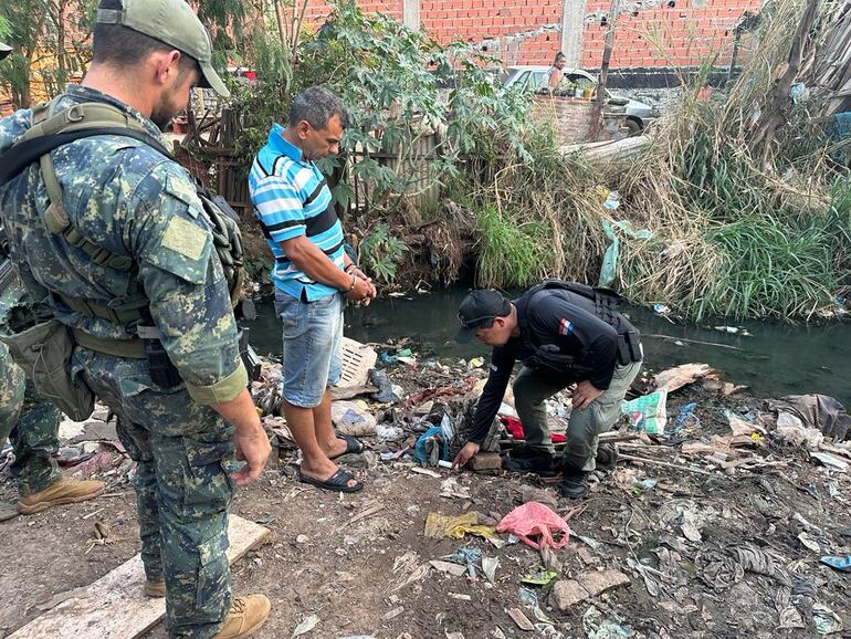 En el patio trasero de la casa, en las cercanías de un arroyo, se encontró un frasco que contenía un total de 39 dosis de crack listas para su comercialización.