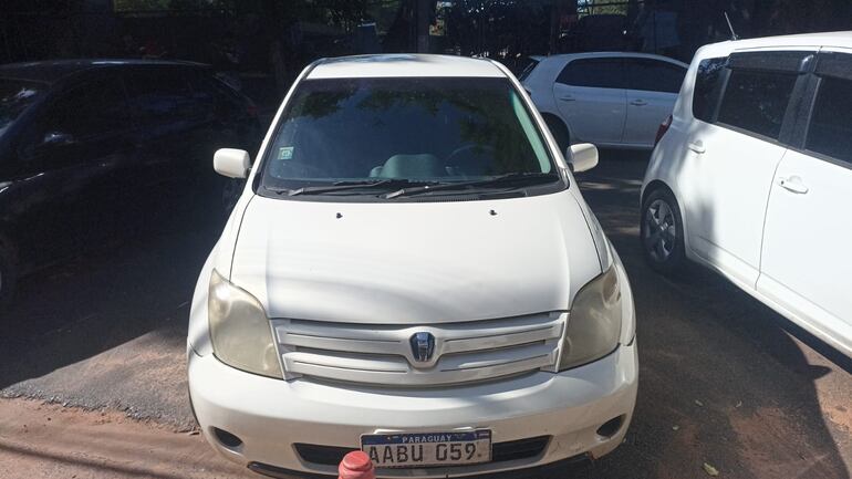El vehículo incautado es un automóvil de la marca Toyota, modelo IST, año color gris perla, año 2002, que estaba al mando de Armando Osmar Benítez, que en el momento del control no poseía ningún documento del automóvil.