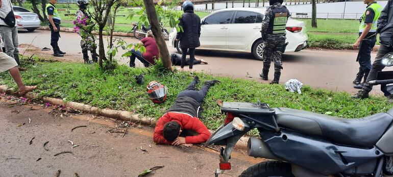 Agentes del Grupo Táctico Motorizado Lince protagonizaron una persecución por el barrio San Pedro de la ciudad de Encarnación, cuando dos jóvenes a bordo de una motocicleta intentaron huir de los agentes que quisieron inspeccionarlos sobre la avenida Lorenzo Zacarías. Posteriormente, aprehendieron a los hombres luego de que perdieran el control de su moto e impactaran contra el cordón del paseo central de la Avenida 3 y terminaran colisionando contra un árbol.