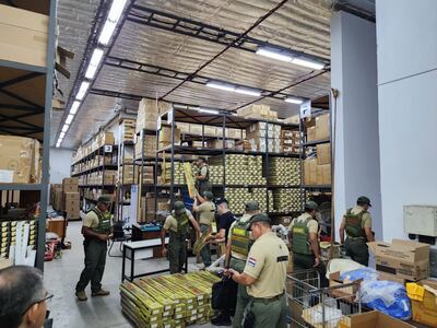 Según las primeras imágenes que se conocieron del allanamiento, en la tienda están presentes agentes de Policía y de la Dirección General de Material Bélico (Digemabel).