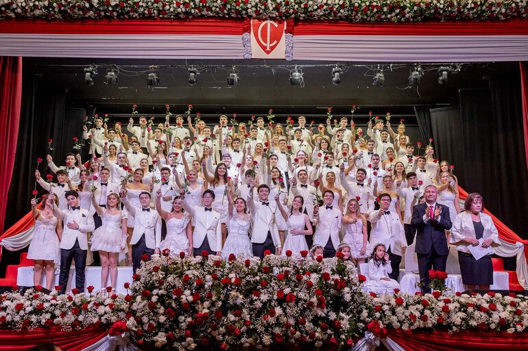 Eugenia Vaisembrut con sus padres Karina y Marcelo.Pura emoción.Pilar y Paulina Baddouh, con sus padres Gabriela y Andrés.Valentina Torio con sus padres Alejandra y José.Duncan Cameron, Fabricio López, Matías Almeida y Mauricio Zárate.Ecos de lo que fuel el tradicional "Día de las Rosas".Los chicos impecables.Las chicas de blanco en un día muy especial.Mateo Cuevas rodeado de su familia.Repartiendo las tradicionales rosas.La promoción 2023 del Internacional.Mucha emoción.Así llegaban los chicos.María Pía Marin, Selene Fretes y Martina Marin.Agustina Stagni, Avril Sánchez y Valentina Espínola.Thais Yambay y Vilma Escobar.Luciana Melgarejo con sus padres Monserrat y Daniel y su hermana Fiorella.