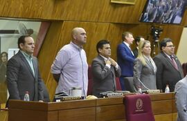 La Cámara de Diputados podrìa tratar hoy la cuestionada Ley de datos personales. En la foto, los cartistas Christian Brunaga, José Rodríguez y Yamil Esgaib.