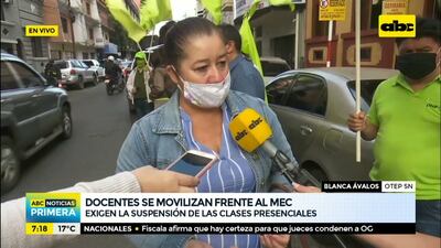 Este artículo tiene 4 años de antigüedad Docentes nucleados en la OTEP-SN están movilizados frente a la sede del Ministerio de Educación y Ciencia (MEC) para exigir la suspensión de las clases presenciales en todo el país debido a la situación sanitaria. Asimismo, solicitan que sea aprobada una ley de emergencia educativa. Este gremio anunció una serie de medidas de fuerza para esta semana.