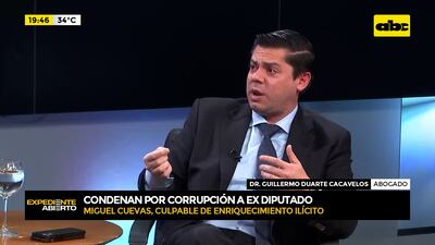 Este artículo tiene 2 años de antigüedad “Este posible vicio nosotros lo anunciamos, vaticinamos el error judicial que se venía. Que ellos se dediquen a sumar y restar y encontrar un nuevo monto viola el artículo 400″, expresó el abogado Guillermo Duarte Cacavelos. Un Tribunal de Sentencia condenó a cinco años de prisión al exparlamentario colorado Miguel Jorge Cuevas Ruiz Díaz por enriquecimiento ilícito. También ordenó el comiso de sus bienes por valor de G. 1.934 millones, monto que –de acuerdo con los cálculos resultantes de la pericia contable– es el saldo negativo que arroja el análisis del dinero que tenía el político.