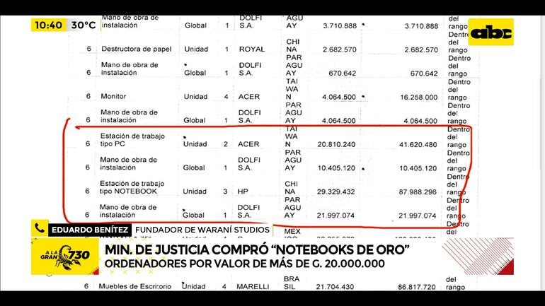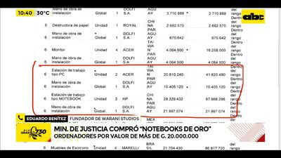 Este artículo tiene 2 años de antigüedad Computadoras que compró el Ministerio de Justicia cuestan 29.000.000 de guaraníes. ”Una computadora para oficina no puede costar eso, nuestros equipos más poderosos, que son para desarrollar videojuegos, cuestan alrededor de 20 millones”, afirmó Eduardo Benítez, fundador de Warani Studios.