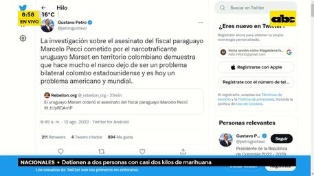 Gustavo Petro, presidente de Colombia, confirma que Sebastián Marset ordenó asesinar al fiscal Marcelo Pecci