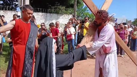Grupo Crisma y cadetes de la Policía Nacional reviven la viacrucis de Jesús camino al calvario